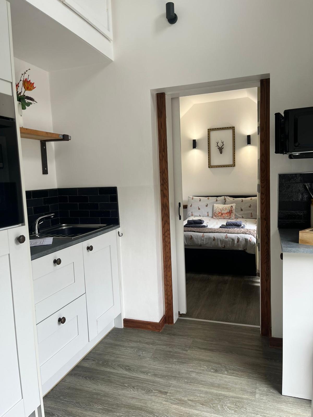 It has a small but well equipped kitchen ,small double bedroom with tv, Netflix and wi-fi., and a small living area.