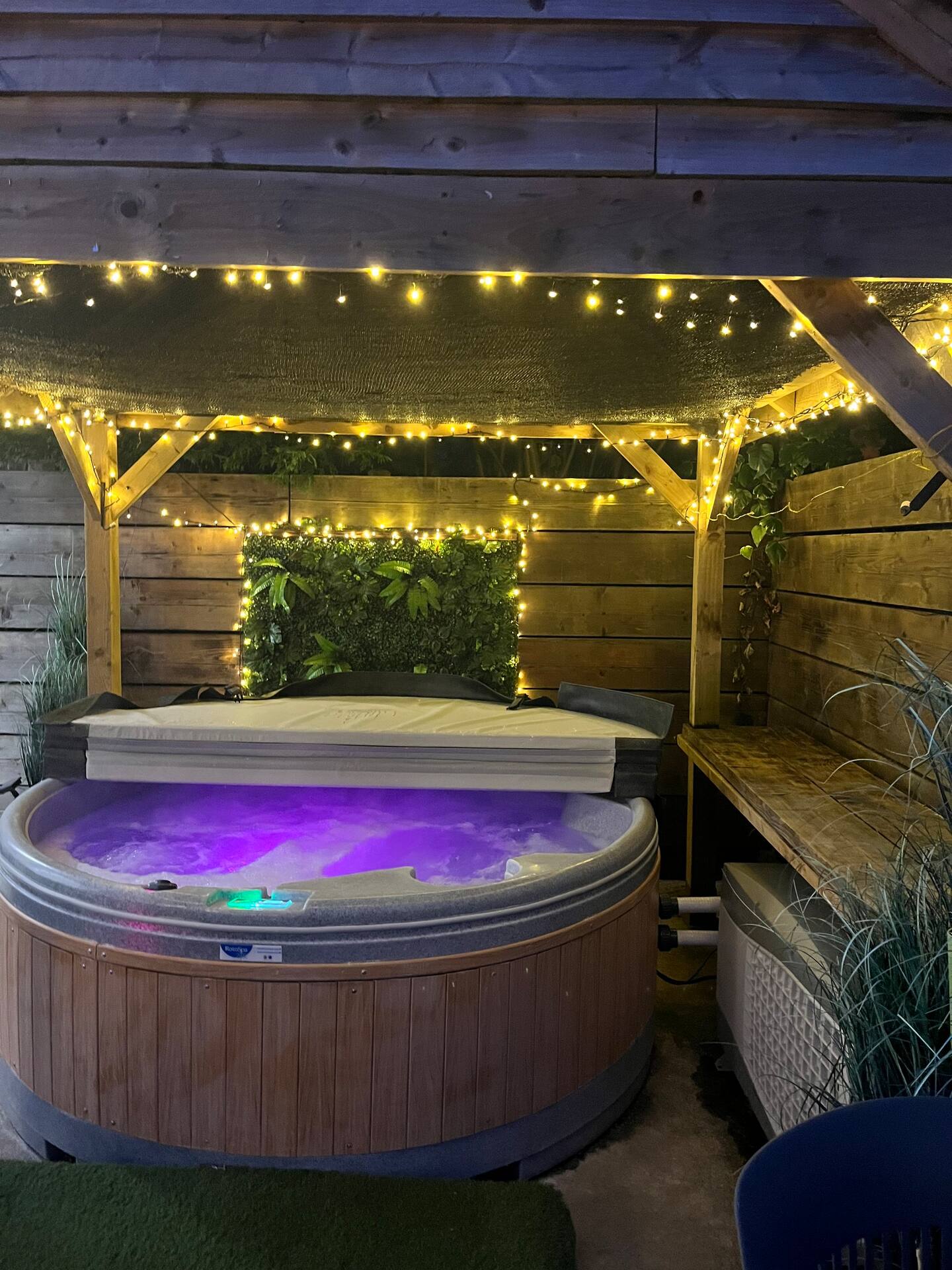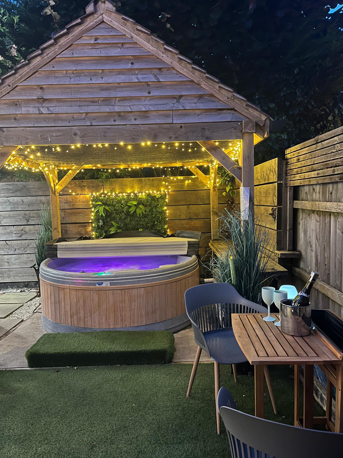 Outside is a fully covered hot tub as well as a log burner and gas bbq